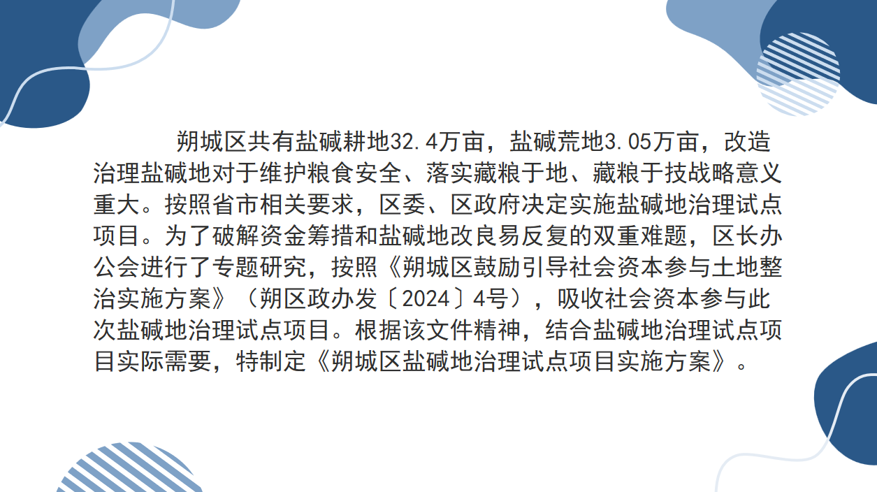 图解《朔州市朔城区人民政府办公室关于印发<朔城区盐碱地治理试点项目实施方案>的通知》